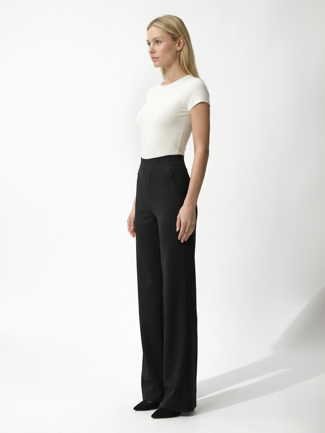 These ultra-soft, do-it-all pants blend a tailored trouser look with the ease and flexibility of activewear. Designed with a clean, straight-leg silhouette and a relaxed drape, they feature a flattering high-rise waist and are crafted from a brushed performance knit for all-day comfort.